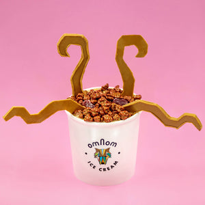 Ísréttirnir okkar eru einhversstaðar á milli bragðarefs og eftirréttar og öll krömbl og sósur eru gerðar í súkkulaðigerð af sérlegum pastry chef Omnom. Hver einasti réttur er búin til með mikilli natni og einungis bestu hráefni notuð hverju sinni. Komdu og smakkaðu draumaísinn þinn en ekki biðja okkur um að búa til venjulegan ís með dýfu. Það kunnum við ekki.