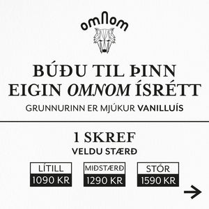 Nú getur þú stjórnað hvað fer í þinn Omnom ísrétt. Í öllum ísréttunum má finna vanillumjúkís, síðan velur þú þér sósu og tvö nammiálegg. Engin samsetning er röng, ekkert val er of galið. Þinn ís er fulkomin rétt eins og þú. Eftir hverju ertu að bíða?